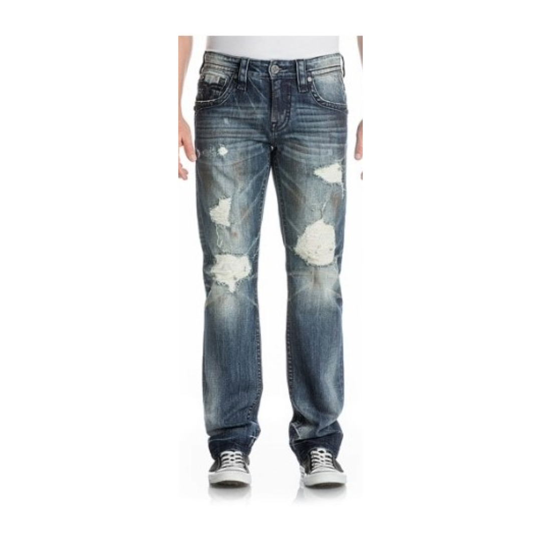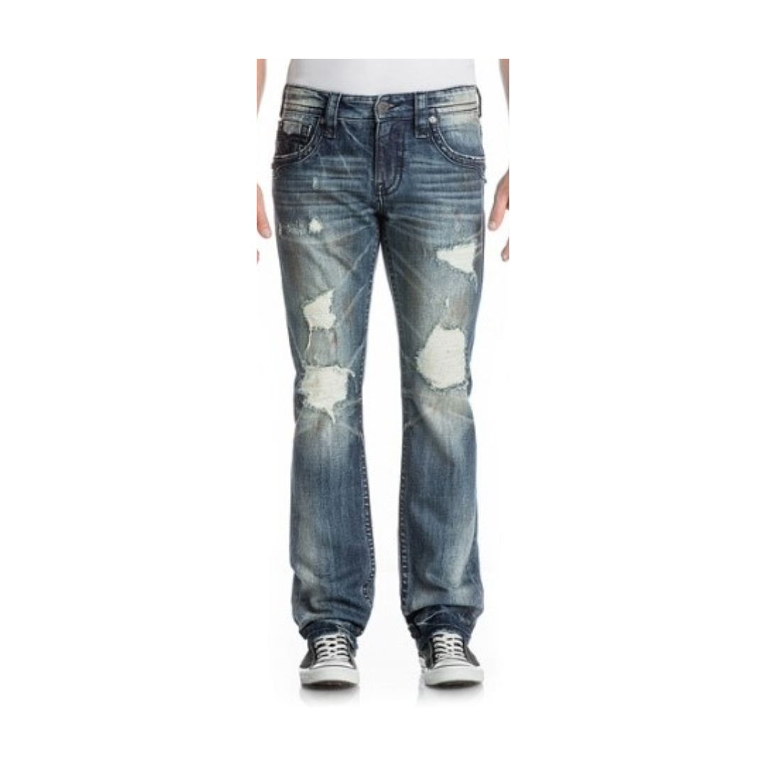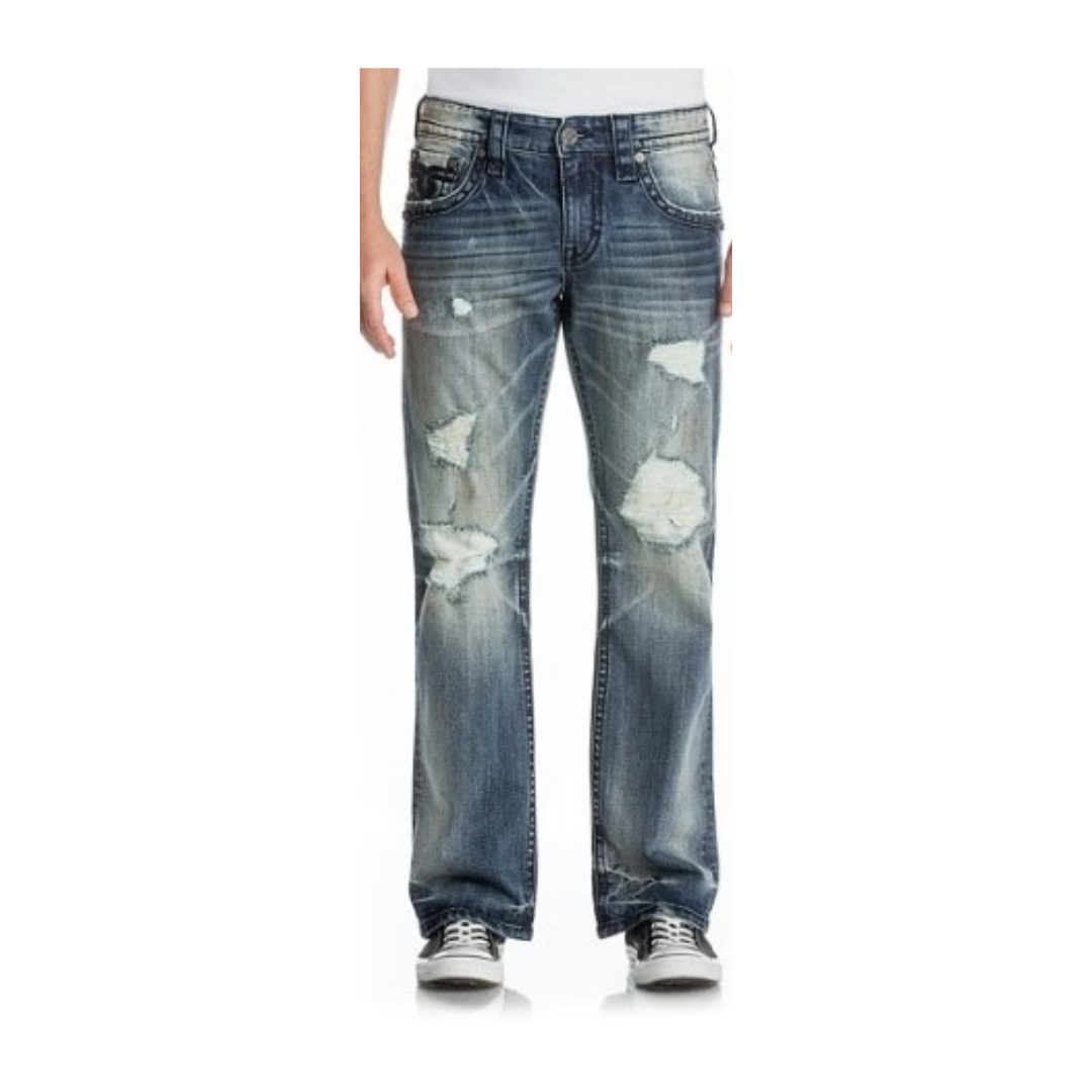 Comfortable silhouette, the bootcut fit offers a slight width on the leg with a slightly flared leg end.